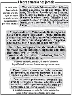 Sabotagem Para sabotar o diretor-geral de Saúde Pública, os jornais cariocas chegaram a publicar a falsa notícia de que a febre amarela havia brotado de novo em Havana. O próprio Carlos Finlay redigiu um comunicado desmentindo a informação e reafirmando a importância de se combaterem os mosquitos e se isolarem os doentes.